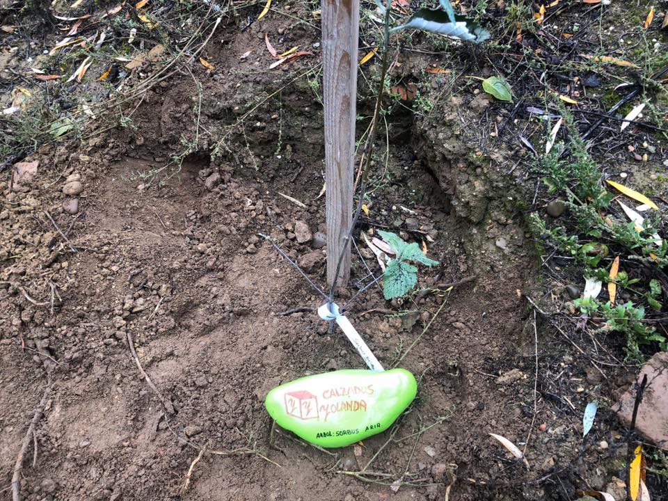 Esta mañana niños y niñas con sus padres, empresarios y comerciantes han plantado 50 árboles. A su lado una piedra decorada con el nombre del adoptante y en muchos casos el nombre dado al árbol.