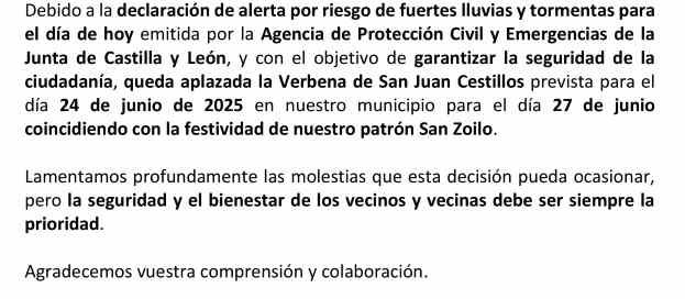 VERBENA DE SAN JUAN CESTILLOS APLAZADA