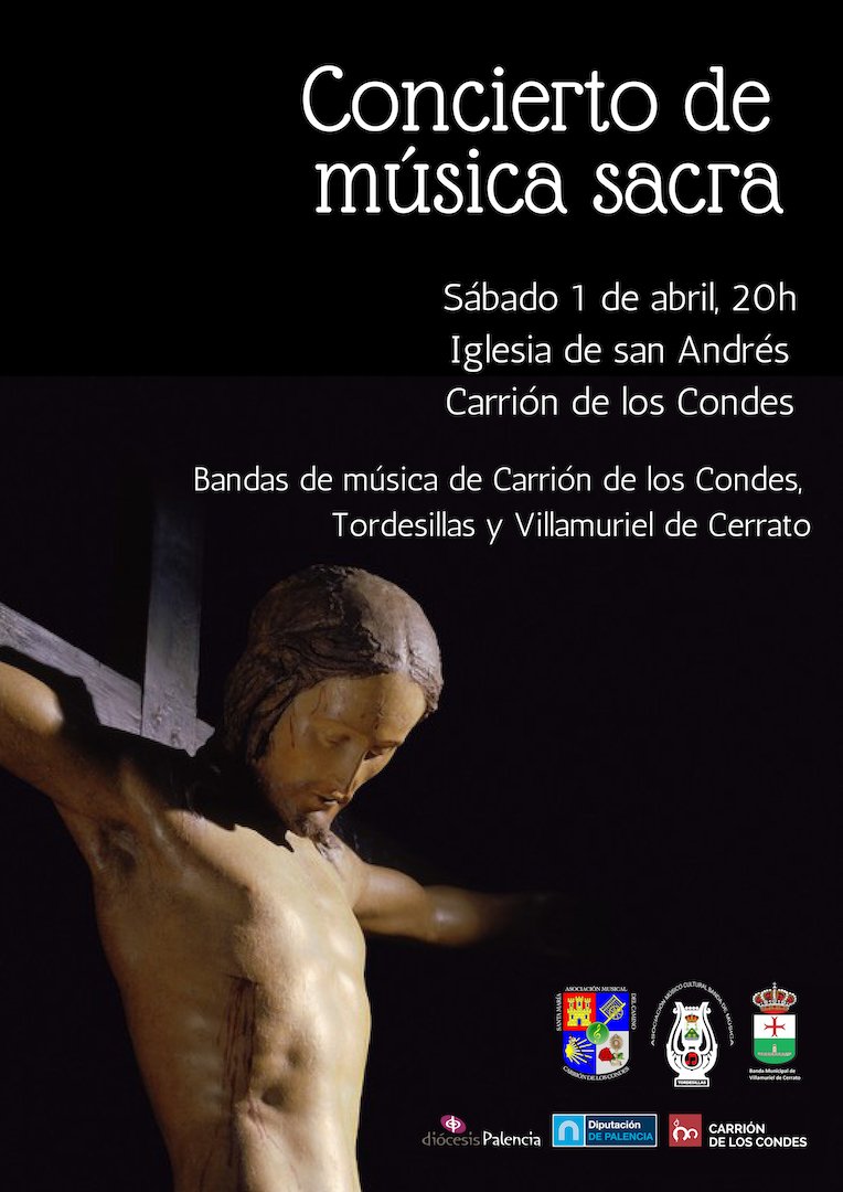 La iglesia de San Andrés Apóstol de Carrión de los Condes es el escenario elegido para la celebración de un concierto de música sacra entre tres bandas el próximo sábado 1 de abril, a las 20:00 h. En él participarán la Asociación Musical Santa María del Camino de Carrión de los Condes, la Asociación Músico Cultural y Banda de Música de Tordesillas y la Banda Municipal de Villamuriel de Cerrato, como uno de los actos estrella de la programación de Semana Santa 2017 y de la celebración del XXV aniversario de fundación de la Asoc. Musical Santa María del Camino de la localidad.
