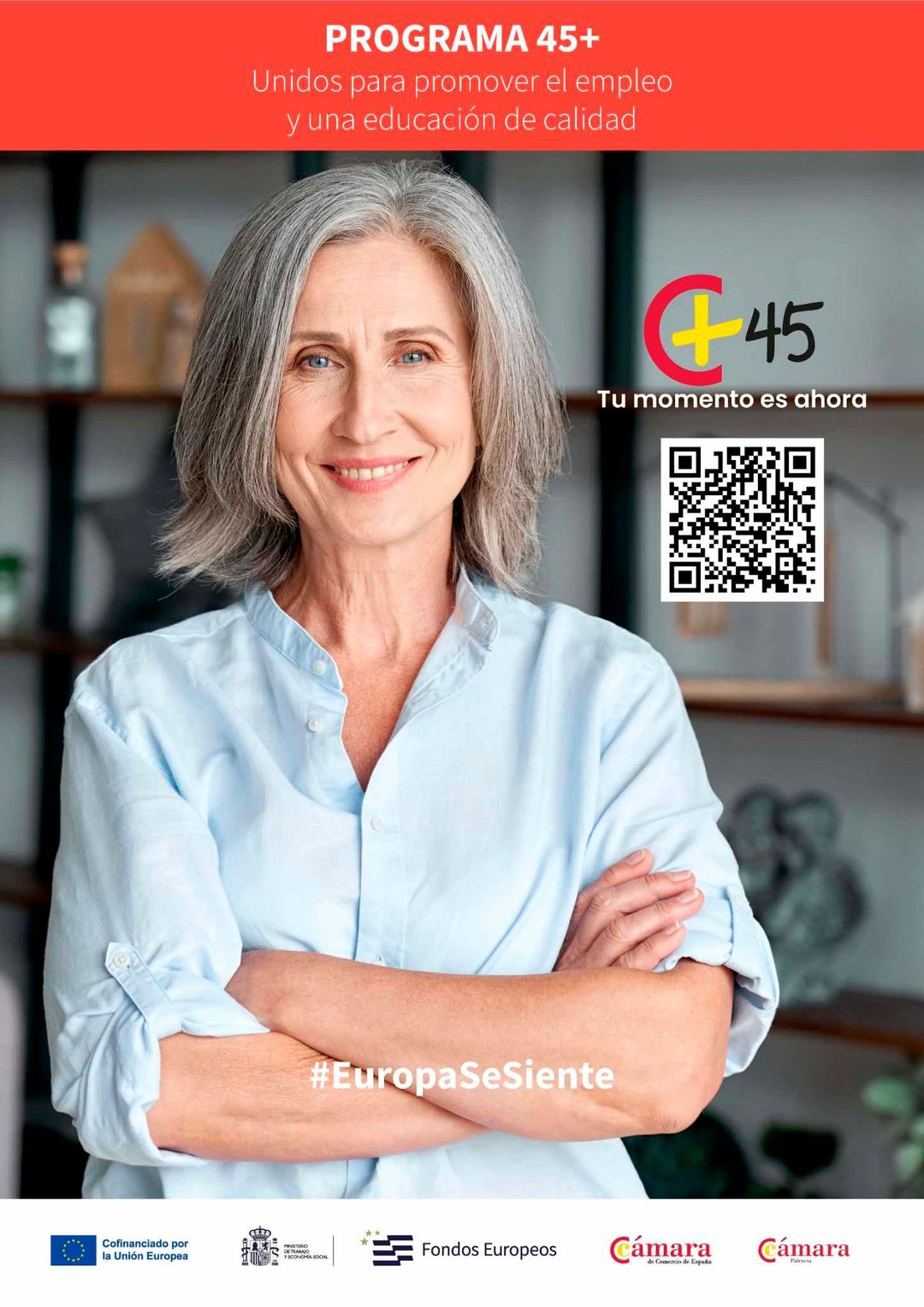 Este programa esta dirigido a todas las personas entre 45 a 60 años (inclusive) en situación de desempleo de la provincia de Palencia y que estén dispuestas a recibir formación y asesoramiento para mejorar sus posibilidades de inserción en el mercado laboral. El Programa 45+ consiste en un itinerario formativo gratuito a medida para favorecer las posibilidades de inserción laboral. Un equipo de profesionales especializados en materia de empleo y formación realiza un acompañamiento activo a lo largo de todo el proceso.