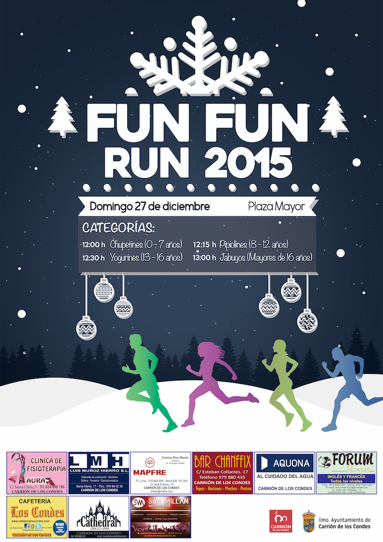 El Ayuntamiento de Carrión de los Condes, a través de la Concejalía de Juventud, Fiestas y Deporte, organiza la Fun Fun Run 2015, una carrera que se celebrará el próximo 27 de diciembre a partir de las 12:00 h, con salida y llegada en la plaza Mayor de la localidad.