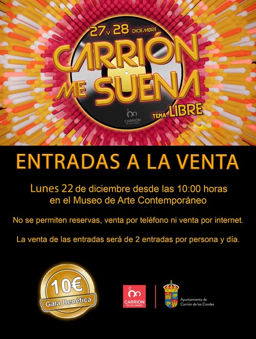 La venta de las entradas será ÚNICAMENTE de 2 entradas por persona y día.