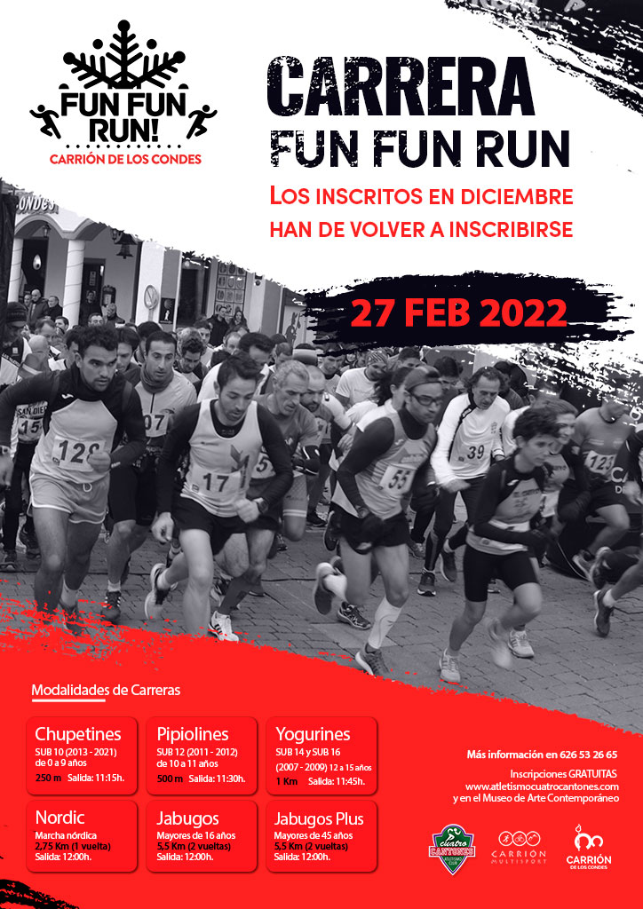 El Ayuntamiento de Carrión de los Condes, junto con la colaboración del Club Atletismo Cuatro Cantones y Carrión Multisport, organiza una nueva edición de la Fun Fun Run, una carrera navideña que por motivos del COVID se suspendió.
